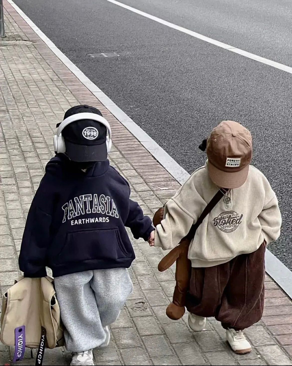 ชุดเซ็ตฮู้ดดี้เด็ก สีน้ำเงิน+ครีม ผ้าสำลีนุ่ม มีฮู้ด อบอุ่นน่ารัก