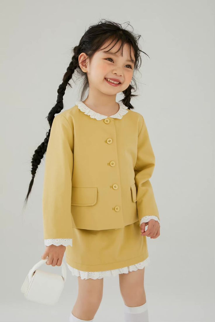 Hazel – เสื้อสเวตเตอร์ไหมพรมสีเหลือง คอปกบัวขาว