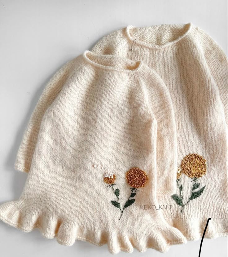 Olivia – เสื้อกันหนาวไหมพรมสีครีมชายระบาย ปักลายดอกไม้