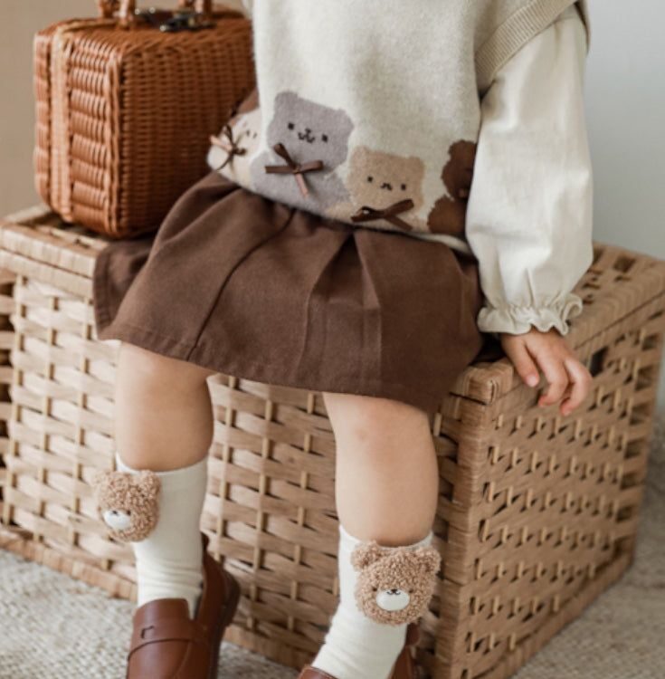 Audrey - ชุดเอี๊ยมกระโปรงสีน้ำตาลเข้ม มีกระเป๋าหน้าและเสื้อแขนยาวสีขาว