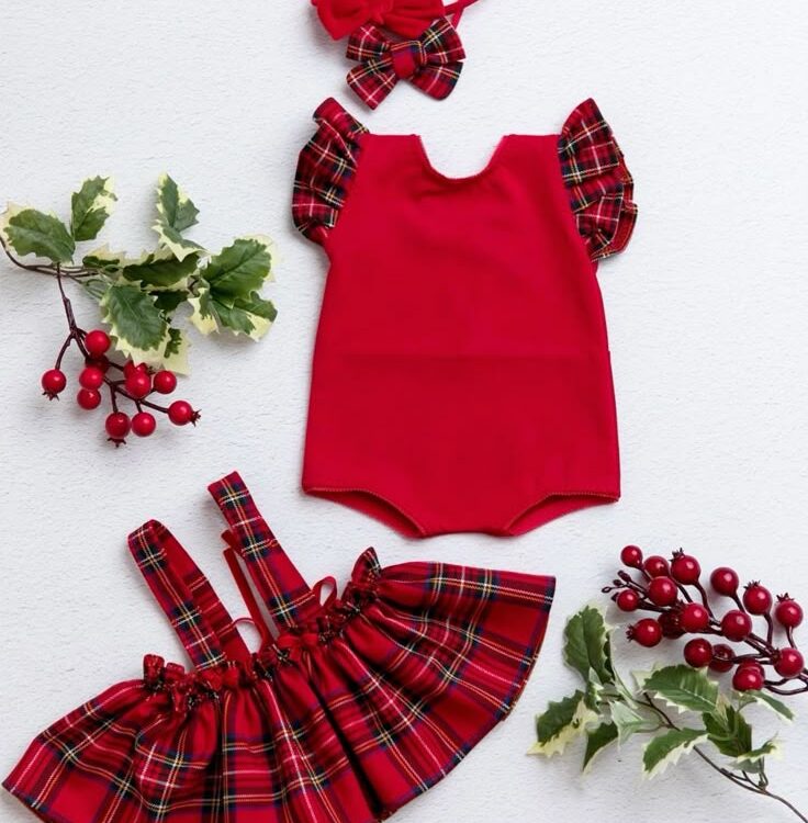 Jude - ชุดเซ็ตบอดี้สูทสีแดงและกระโปรงลายสก็อต