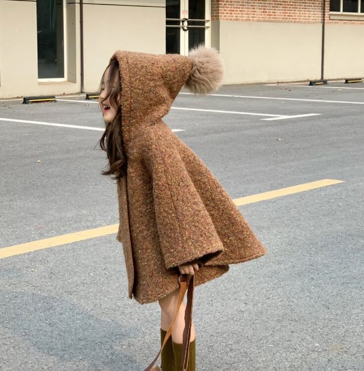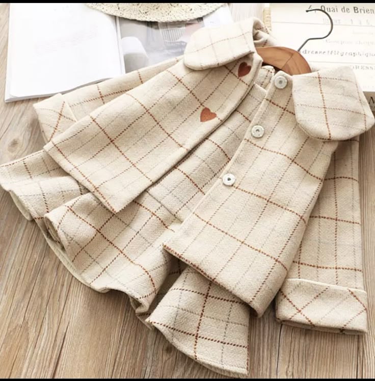 Henry - เสื้อโค้ทสั้นลายตารางสีเบจ-น้ำตาล มีปกบัวใหญ่