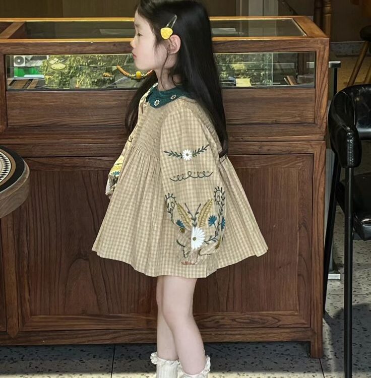 Clara - ชุดเดรสแขนยาวสีน้ำตาล คอปกบัวใหญ่ มีกระเป๋าหน้า