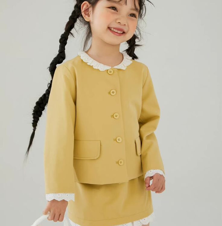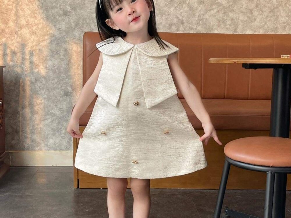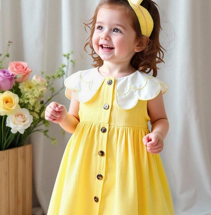 Isabella - ชุดเดรสสีเหลืองอ่อน คอปกบัวใหญ่ มีกระดุมด้านหน้า