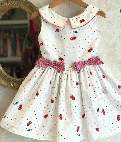 Grace - ชุดเดรสสีขาวลายเชอร์รี่สีแดง คอปกบัว