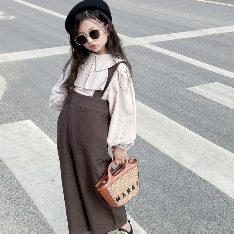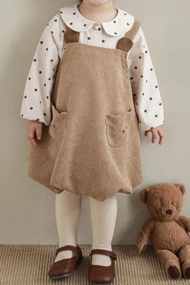 Lottie - ชุดเสื้อแขนยาวสีขาว กระโปรงเอี๊ยมสีน้ำตาลอ่อน