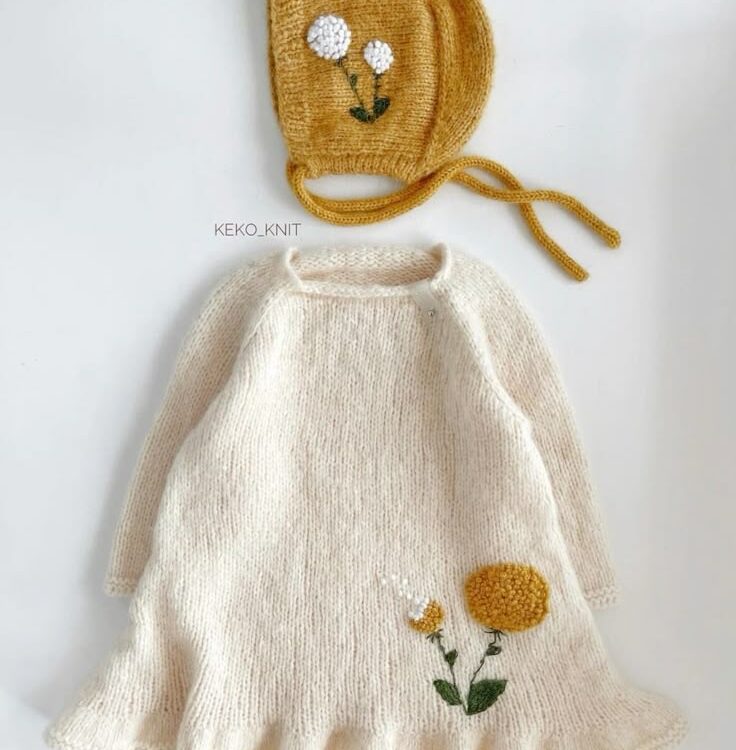 Anna - ชุดเสื้อแขนยาวไหมพรมสีขาว-เบจ ปักลายดอกไม้