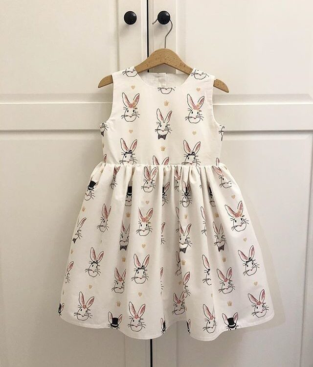 Gwendolyn - ชุดเดรสแขนยาวสีขาวลายกระต่ายน่ารัก