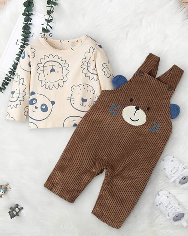 Luke - ชุดเอี๊ยมหมีสีน้ำตาลผ้าลูกฟูก